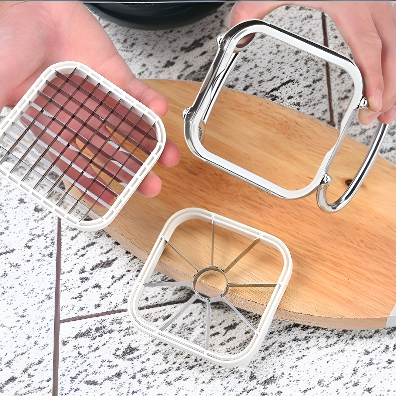 ● Mit dem multifunktionalen Gemüse- und Obstschneider können Sie verschiedene Schnittoptionen wählen und mühelos Kartoffeln, Obst und Gemüse in gewünschte Formen bringen – ideal für kreative Küchenideen. ● Dank hochwertiger Materialien und ergonomischem Design ist der Kartoffelteiler langlebig, einfach zu reinigen und gewährleistet eine sichere Handhabung beim Schneiden. ● Der praktische Schneider spart Zeit im Alltag und ermöglicht gleichmäßige Schnittergebnisse, wodurch Ihre Gerichte optisch ansprechend und professionell wirken. ● Vielseitig einsetzbar: Ob Scheiben, Würfel oder Stifte – mit diesem Gerät bereiten Sie Salate, Snacks oder Beilagen schnell und unkompliziert zu.