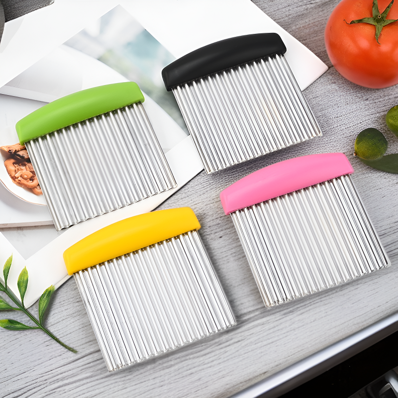 ● Mit dem wellenförmigen Zwiebelschneider zaubern Sie im Handumdrehen dekorative Wellenmuster für Pommes, Salate und Gemüse – ideal für kreative Küchenideen und ansprechende Präsentation. ● Der ergonomische Griff und die hochwertige Edelstahlklinge sorgen für müheloses Schneiden, hohe Stabilität und langanhaltende Schärfe – perfekt für den täglichen Gebrauch. ● Einfach zu reinigen und spülmaschinenfest, spart der Zwiebelschneider Zeit und Aufwand, sodass Sie sich ganz auf das Kochen und Genießen konzentrieren können. ● Vielseitig einsetzbar: Schneidet nicht nur Zwiebeln, sondern auch Kartoffeln, Gurken, Karotten und vieles mehr – für abwechslungsreiche und gesunde Mahlzeiten.